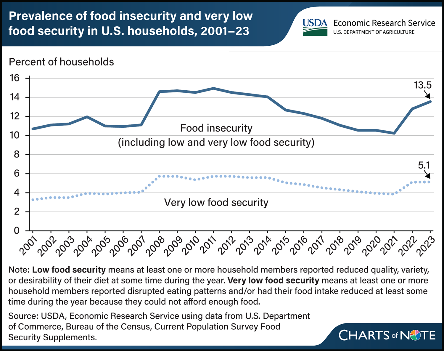 At its root, food insecurity is an economic problem. Simply put: If you don’t have sufficient income or wealth, it’s harder for you to afford food, especially if prices rise. Food insecurity actually dropped by more than 30% between 2011 and 2021 because food prices remained relatively low and stable, while economic growth propelled incomes. But between 2020 and 2024, food prices swelled 23.6%, straining the budgets of many families. In 2023, families living below the federal poverty line experienced food insecurity at a rate nearly three times the national average, according to the U.S. Department of Agriculture.