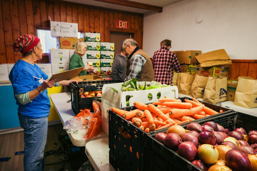 At Shared Table, a similar effort is underway to get food to those who need it most. In addition to its distribution days, the food bank runs a delivery program, transporting groceries to about 100 families who are unable to access food banks, soup kitchens, or other resources each month. Many recipients are people with disabilities, a demographic at greater risk for food insecurity, and others who don’t have sustainable transportation. Every month, volunteers see people who ride the bus, hitchhike, or even walk, arriving at the distribution site pushing wheelbarrows and wagons to carry their food home, Lyon says. To help alleviate the burden for working families and reach more people, Shared Table allows visitors to pick up food for others, a contrast from other food banks. Family members, neighbors, and friends can all visit Shared Table and collect food for those who need it. It’s a model built on trust, compassion, and a desire to remove the obstacles that many rural residents must navigate.